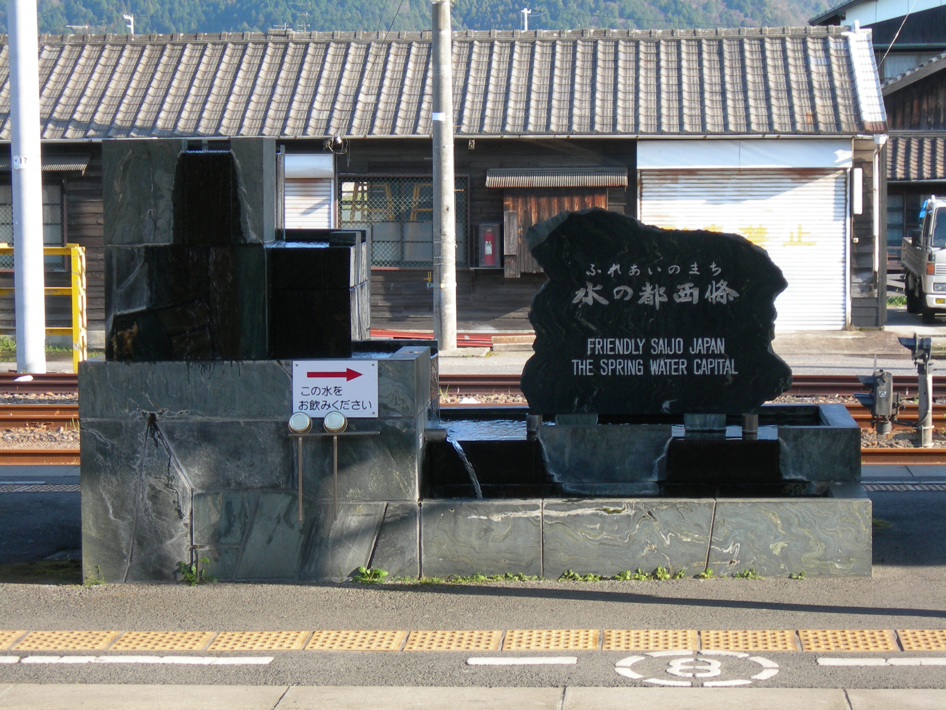1967년에 역 앞에 로터리 등이 설치되었지만, 보도 등의 노후화가 진행되면서 2004년부터 2008년까지 사이조시의 "도시 조성 기반 정비 사업"의 일환으로 역 동쪽에 있는 철도 역사 공원 in SAIJO 등과 함께 교통 결절점뿐만 아니라 시역의 특성에 상응하는 역전으로 재정비가 이루어졌다. 이 정비는 주민 대표 및 상공업 단체 외에 JR 시코쿠 및 일본 내셔널 트러스트 등을 포함하여 계획되었다.[27][28]