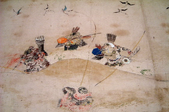사료에는 『아키타번 가보문서』의 쇼헤이 5년조에 아키타성 스케겐 타이조(秋田城介源泰長)가 '쇼헤이 5년(1350년) 8월, 데와국 히라가군(出羽国平鹿郡) 메이나가 구마노 신사(요코테시)에 히라가군 요시다(平鹿郡吉田)・야하타(八幡), 센보쿠군(仙北郡) 이이즈미(飯詰)의 3곳을 기부하고 오카츠군・히라가군・센보쿠군을 오오오왕사자무(午王獅子舞)의 약령(掠領)으로 삼았다'고 기록이 있다.