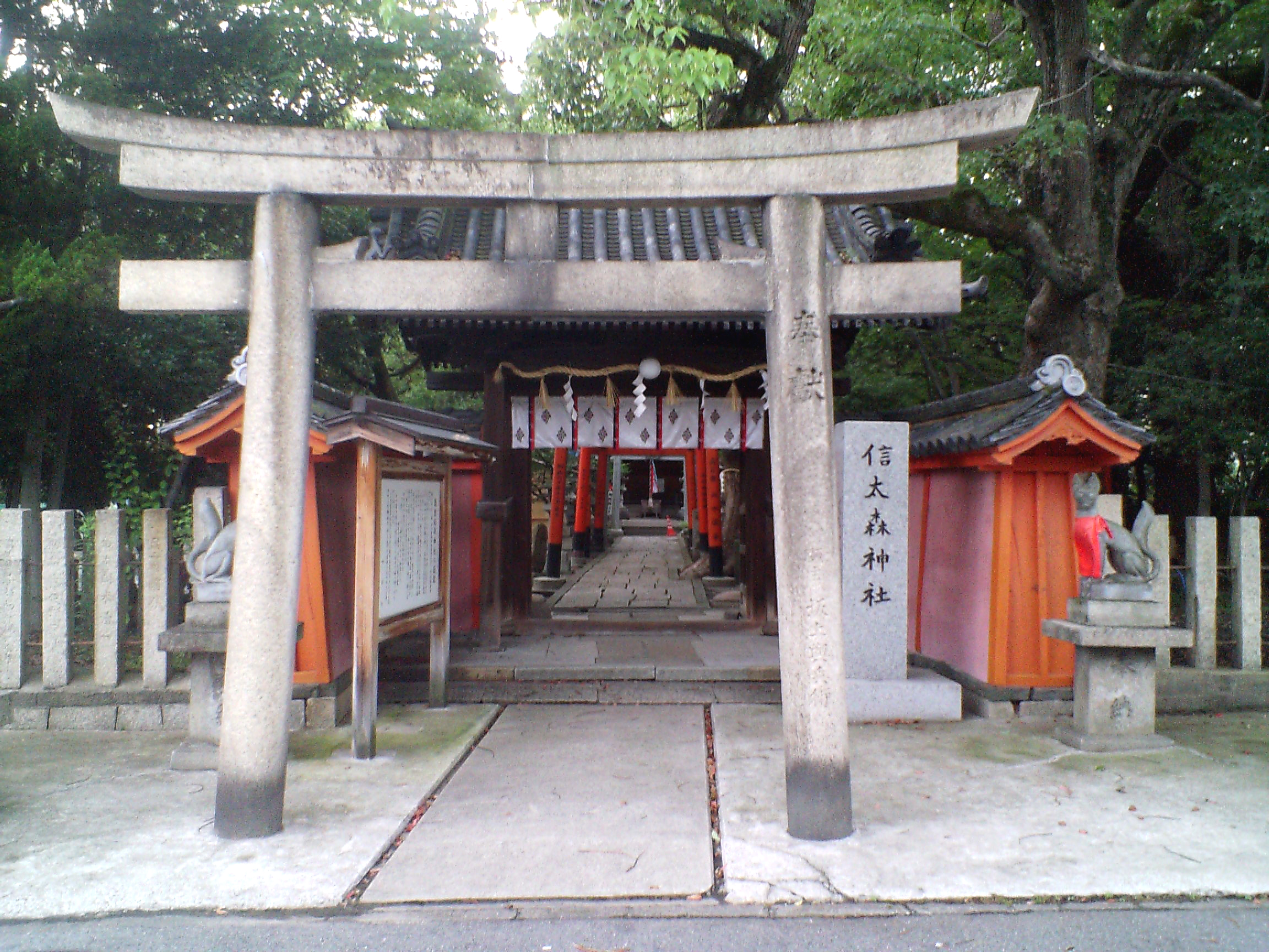 헤이안 시대, 세이 쇼나곤이 "모리는 시노다의 산"("마쿠라노소시")이라고 칭찬하고, 많은 가인들이 와카에 읊었던 시노다의 숲은 시노다 산 구릉의 북부를 중심으로 퍼져 있었다고 생각되며, 그 모습은 현재도 성신사나 시노다모리 구즈하 이나리 신사의 숲에서 엿볼 수 있다.
