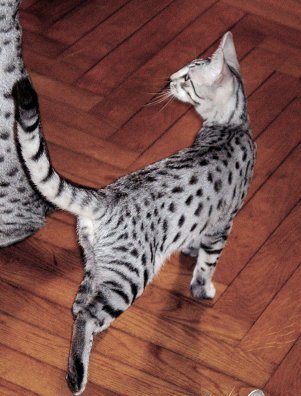이집션 마우의 반점(스포티드 태비)은 벵갈(야생종과의 이종교배)이나 오시캣(순혈종끼리의 선택 교배)의 반점과는 달리 자연 발생적인 것이다.