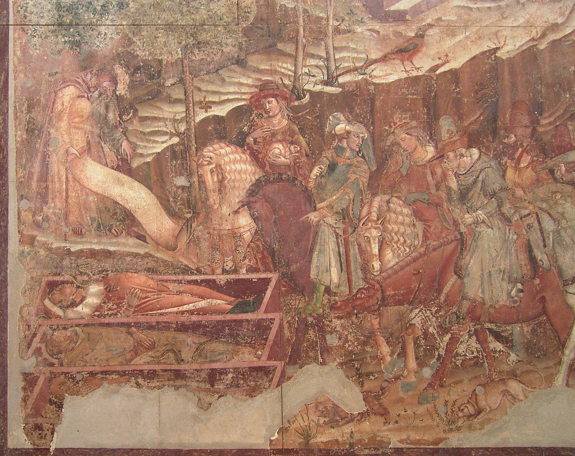 피사의 죽음의 승리 프레스코화에는 이집트 사막의 은둔자이자 안토니우스 대제의 제자인 대(大) 마카리오스가 묘사되어 있다. 부유한 젊은 남녀들이 즐거운 여행 중 숲 속에서 시신이 있는 세 개의 열린 석관을 마주하고 경악하는 장면에서, 마카리오스는 두루마리를 읽음으로써 삶과 죽음에 대한 교훈을 가르친다. 피렌체 조각가 벤베누토 첼리니는 이 마카리오스의 묘사에서 영감을 받아 자신의 초상화를 그렸다.