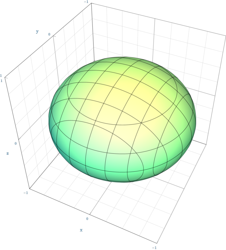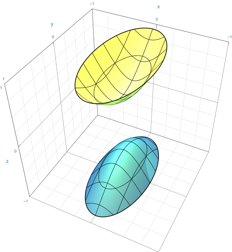 타원면 | 타원을 회전하여 얻는 곡면. |