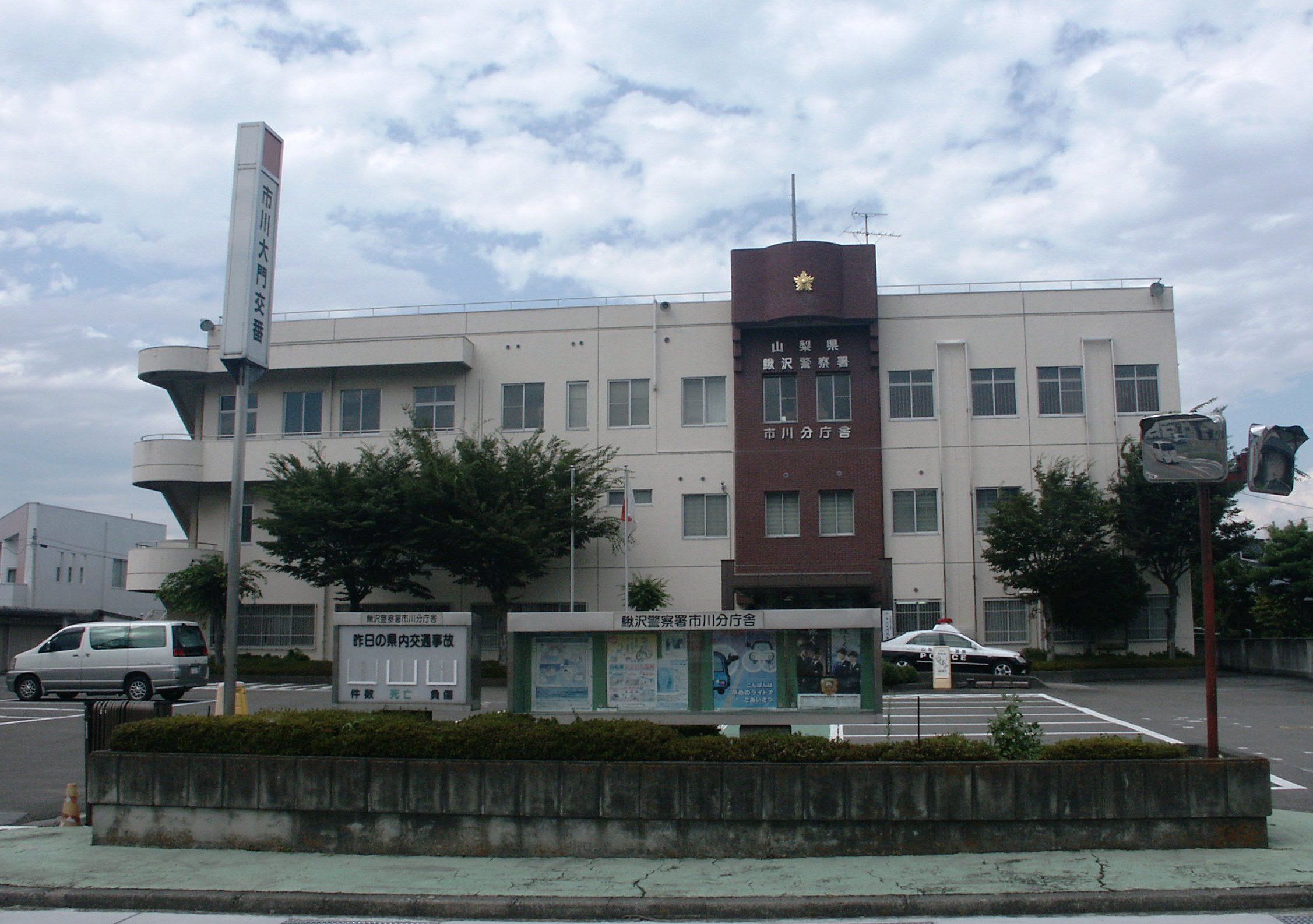 야마나시현 경찰 카스카제 경찰서 이치카와 분청사(市川分庁舎)가 있다. 과거 이치카와 경찰서(市川警察署)가 존재했으나, 2007년 4월 1일에 카스카제 경찰서와 통합되어 동서의 분청사가 되었다. 이치카와오오몬 파출소(市川大門交番), 다이도 주재소(大同駐在所), 우에노 주재소(上野駐在所), 이와마 주재소(岩間駐在所)가 있다.7. 2. 소방