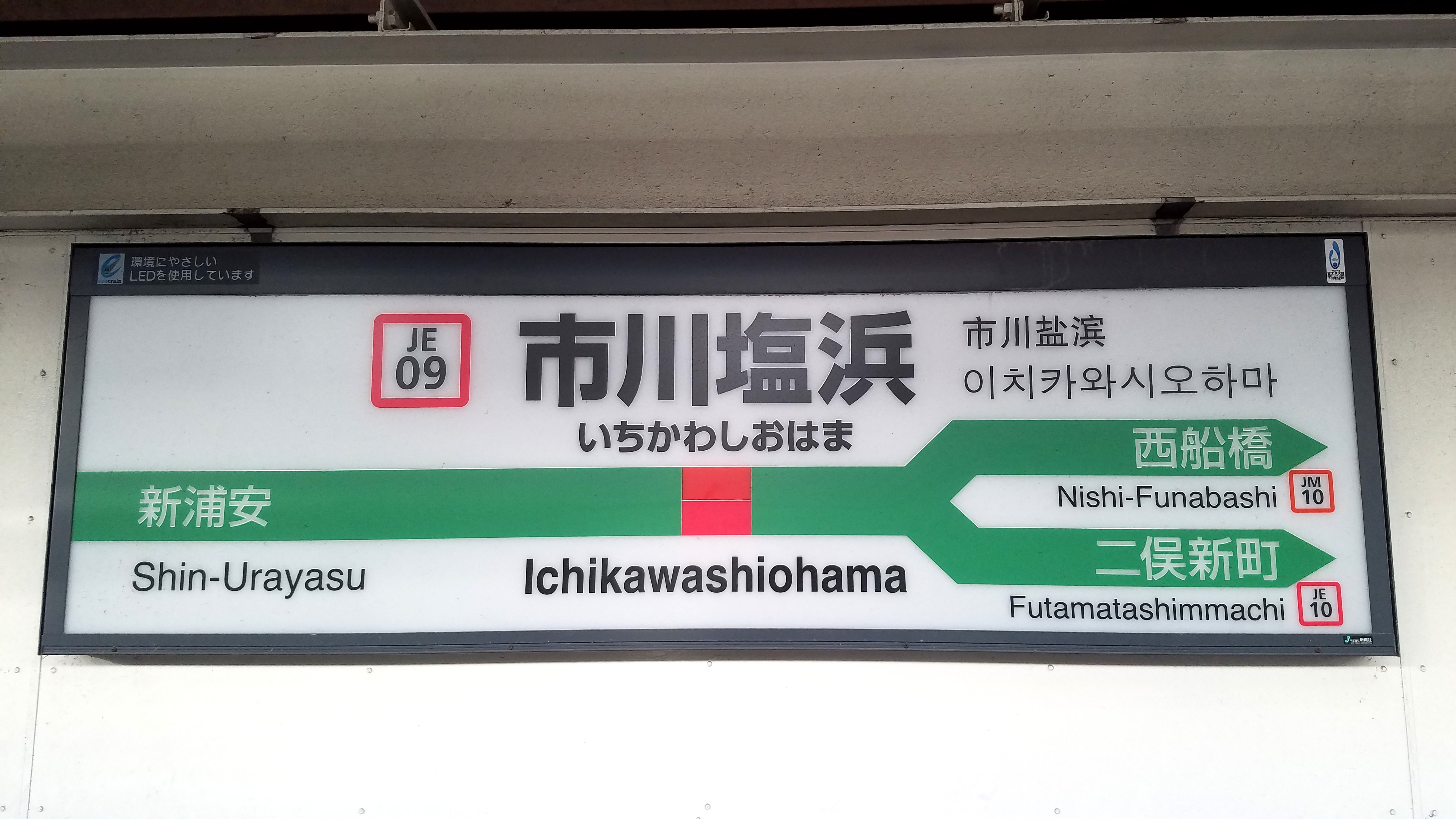 무사시노 선 (게이요 선 직결) 인접 역 | 이전 역: 신우라야스 (JE08) 다음 역: 니시후나바시 (JM10) |