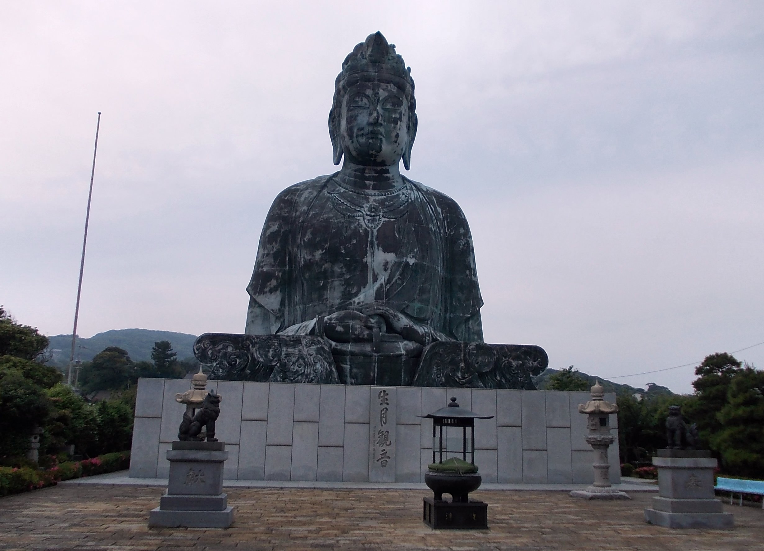 - 생월 대어람 관음 - 일본에서 가장 큰 청동상이다. 1980년 4월 29일에 완공된 이 거대한 조각상은 높이가 18m이고 무게는 150ton이다. 3m 높이의 석조 기초 위에 자리 잡고 있으며, 그 안에는 불교 제단이 있다. 일본 불교에서 관음은 자비의 보살이며, 나라현 나라시와 가나가와현 가마쿠라시에 있는 유명한 청동상으로 묘사되는 부처와는 다르다. 이키쓰키 대어람 관음상은 세계 평화와 바다에 나가는 사람들의 안전을 기원하며, 모든 난파된 사람들과 해양 동물을 애도한다.