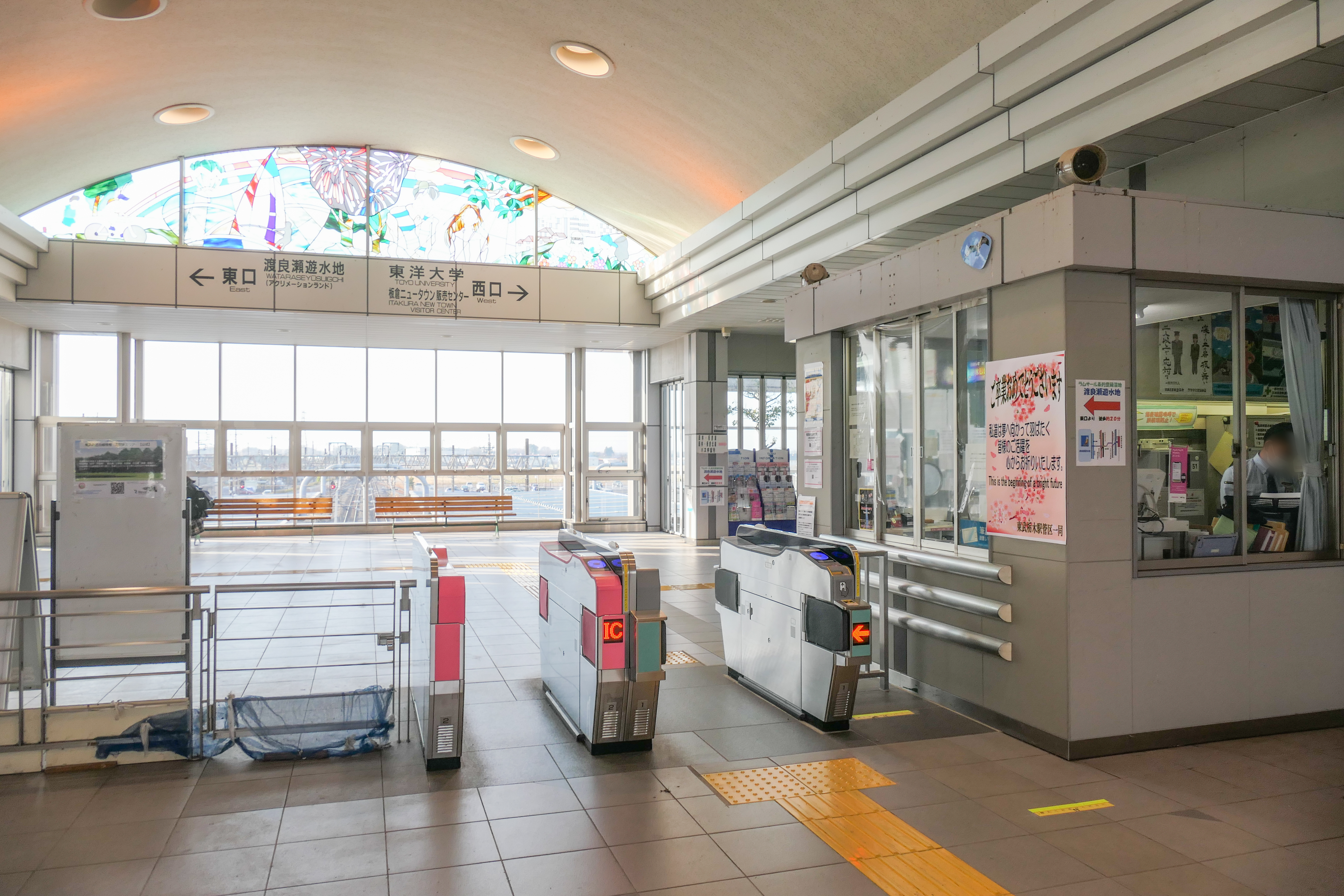 섬식 승강장 2면 4선의 지상역으로, 교상역사를 갖추고 있다. PASMO 대응 자동 개찰기가 설치된 역이다. 동쪽 출구, 서쪽 출구, 승강장과 개찰층을 각각 연결하는 엘리베이터와 에스컬레이터가 설치되어 있다.