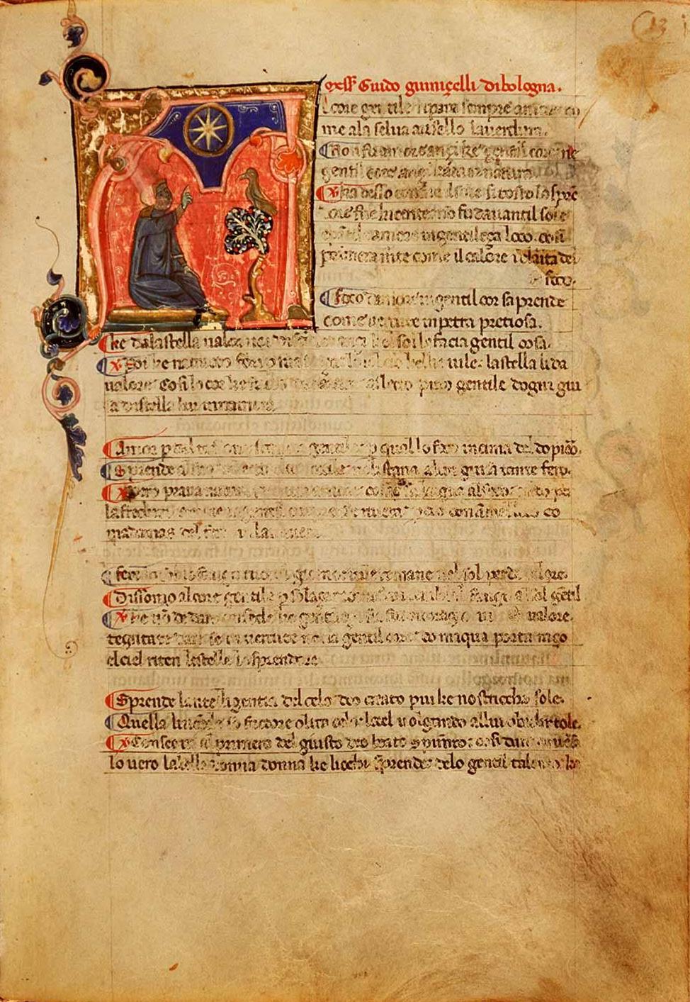 구이도 구이니첼리는 당시 학원 도시였던 볼로냐에서 '청신체(淸身體; Dolce Stil Novo) 파(派)'를 창시하였다.[25] '시칠리아 파' 시인들의 사랑은 개인적 감정이 아닌 모방적 정서였지만, '청신체 파'는 사랑의 개념을 정신화(精神化)하였다.[22] 즉, 부인은 애인의 마음을 정화하여 숭고한 진, 선, 신(神)에게로 향하게 하는 존재로 여겨졌다. 이 시파에는 단테, 구이니첼리, 카발칸티 등과 치노 다 피스토이아, 디노 프레스코발디, 라포 잔니 등이 참여했다.