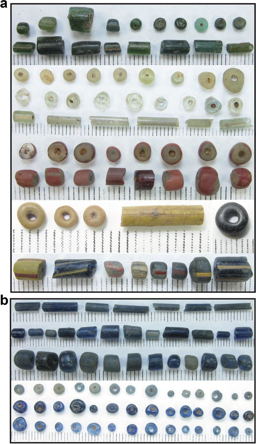 Igbo Olokun은 Olokun Grove라고도 알려져 있으며,[27] 서아프리카에서 유리를 생산하는 가장 초기의 작업장 중 하나일 수 있다.[28] 유리 생산은 11세기 전, 적어도 그 시기에 시작되었을 수 있다.[27] 11세기에서 15세기는 유리 생산의 정점이었다.[27] 고석회, 고알루미나(HLHA) 및 저석회, 고알루미나(LLHA) 유리는 현지에서 조달한 레시피, 원자재, 화공술을 사용하여 개발된 뚜렷한 조성이다.[29] 9세기 이후 서아프리카 전역에서 발견된 HLHA 유리 구슬[29] (예: 나이지리아 남부의 이보-우쿠, 말리의 가오 및 에수크, 부르키나파소의 키시)는 이 유리 구슬 제작 산업이 이 지역에서 가지는 더 넓은 중요성을 보여주고 지역 무역 네트워크(예: 사하라 횡단 무역, 대서양 횡단 무역)에 참여하고 있음을 보여준다.[29][27] 유리 구슬은 “요루바인, 서아프리카인, 그리고 아프리카 디아스포라”의 “정치 권력, 경제 관계, 문화/영적 가치를 협상하는 통화” 역할을 했다.[27]