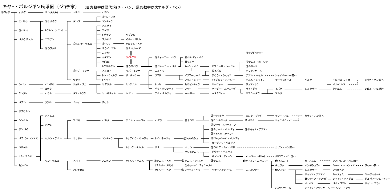 조치부터 대 오르다까지의 계보는 다음과 같다.