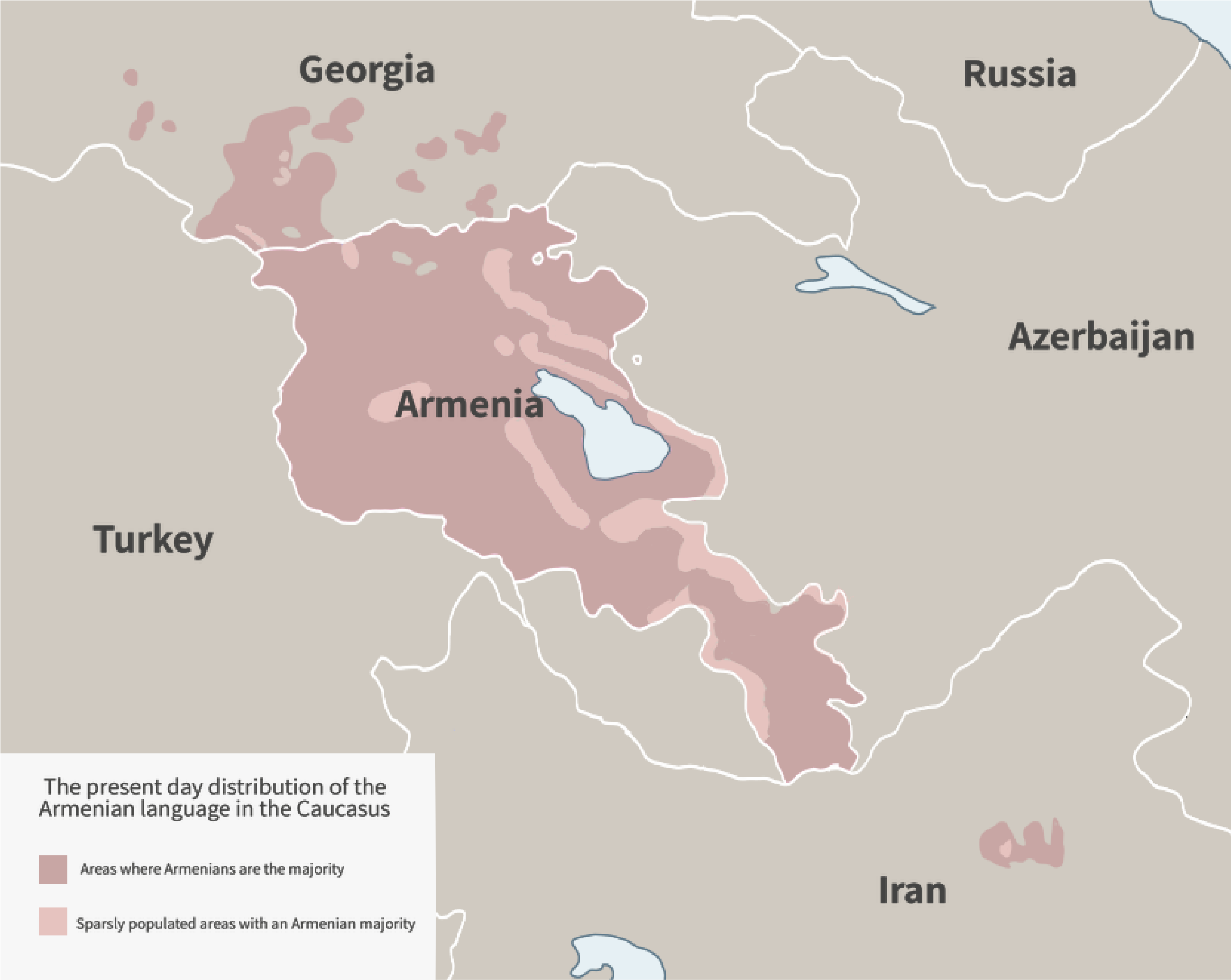 아르메니아어는 이란어군으로부터 많은 어휘를 차용하여 과거에는 이란계 언어로 여겨지기도 했다.[126] 이란어군뿐만 아니라 튀르크어족과 코카서스어족으로부터도 어휘를 차용하는 등 다양한 영향을 받았다.