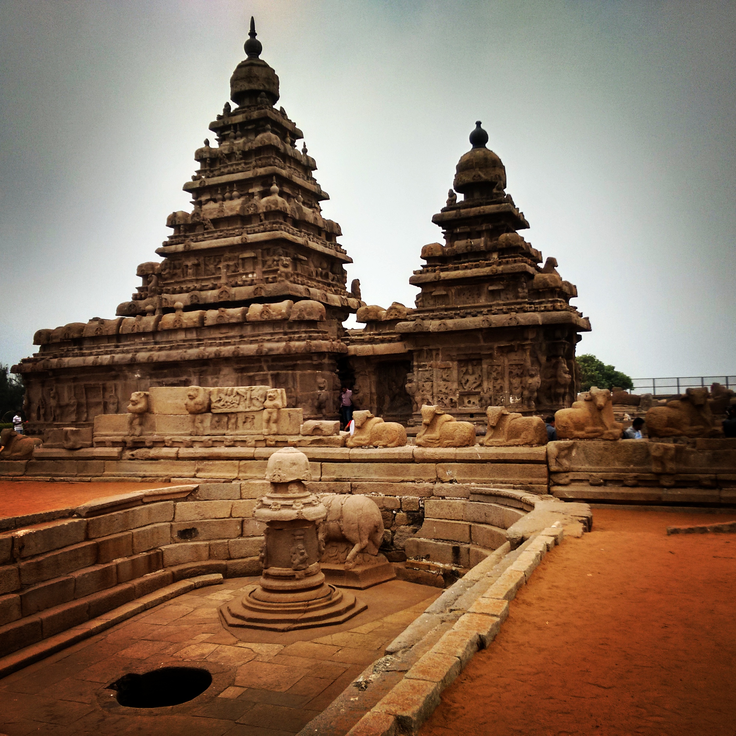 마하발리푸람 기념물군팔라바 왕조 시대인 7세기와 8세기에 건설되었다. 다양한 유형의 유적이 있는데, 전차 모양의 사원인 ''라타'' (다르마라자 라타); ''만다파'' (바위 깎아 만든 사원); 거대한 ''갠지스 강 하강''을 포함한 암석 부조; 쇼어 사원과 기타 사원 및 고고학적 유적이 있다. 이 유적들의 예술적 표현은 캄보디아, 베트남, 그리고 자바를 포함한 더 넓은 지역에 영향을 미쳤다.[14]