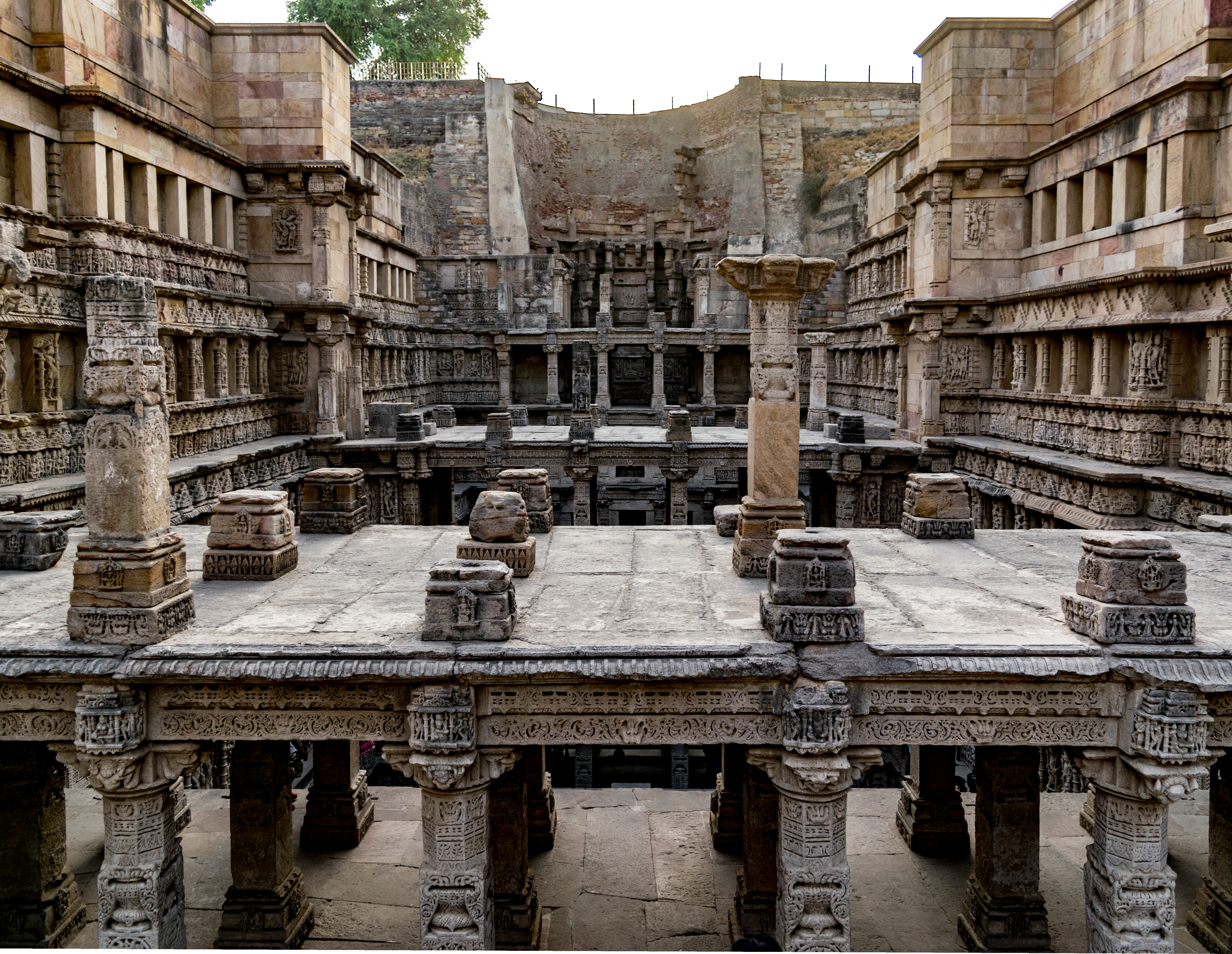 구자라트주 파탄의 라니키바브(왕비의 계단 우물)는 정교한 유형의 우물인 계단 우물의 가장 훌륭한 예 중 하나이며, 여러 층의 계단을 통해 지하수에 접근할 수 있다. 차울루키아 왕조 시대인 11세기에 파탄시에 있는 사라스와티 강둑에 건설되었다. 7개의 층이 있으며, 종교적, 세속적 주제와 문학 작품을 묘사한 돌 조각과 조각으로 장식되어 있다. 13세기에 강의 흐름이 바뀌면서 더 이상 사용되지 않게 되었고, 실트로 덮이면서 보존될 수 있었다.[42]