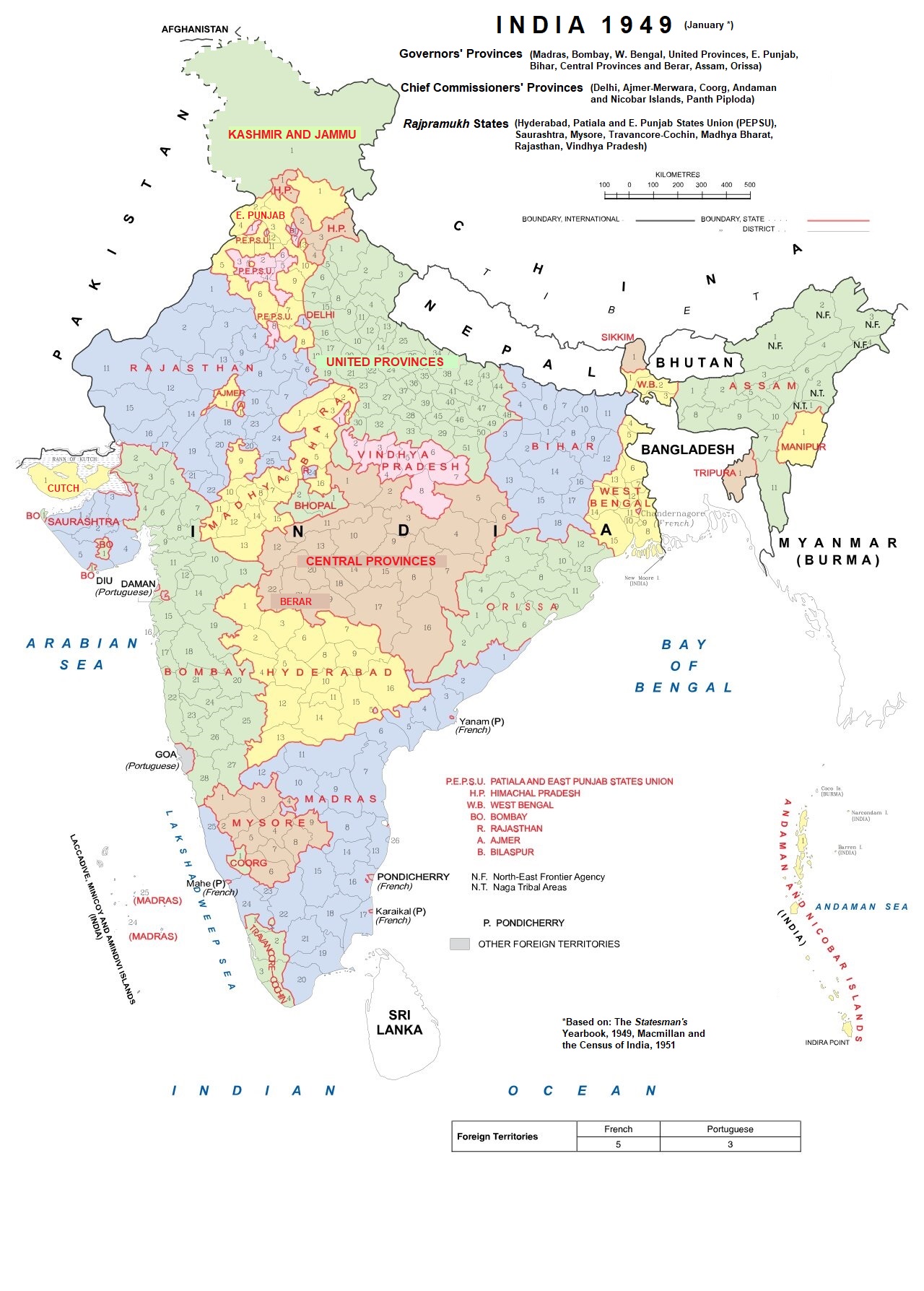 라자스탄과 펀자브 | 각각 아지메르 주와 파티알라 및 동부 펀자브 주 연합에서 영토 획득. |