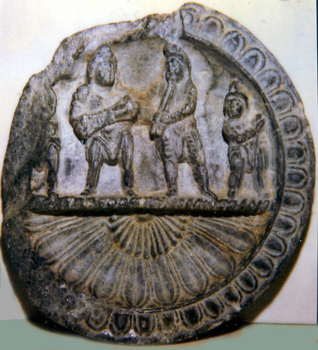 인드라바르만이 봉헌한 바자우르 유물함 - 제이오니세스와 아스파바르마: 동전에 삼보를 사용했다.