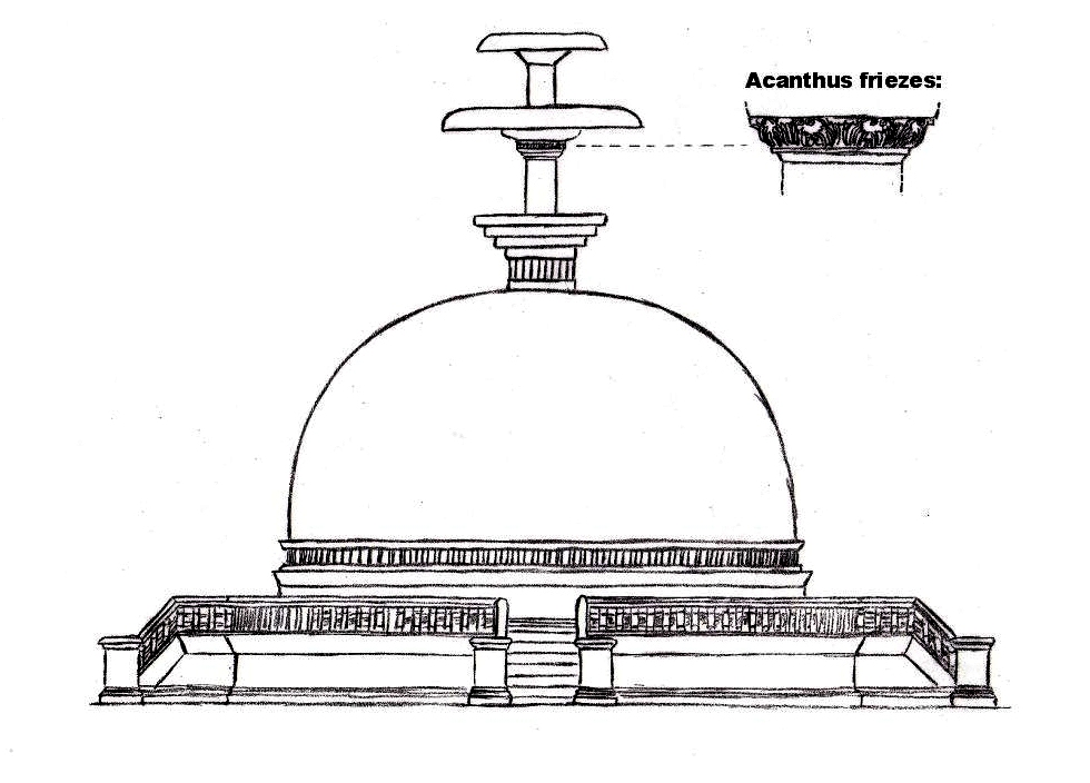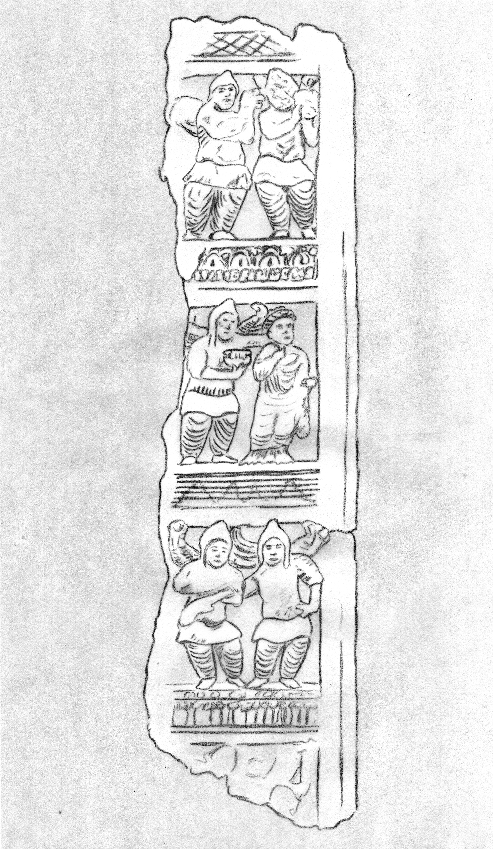 이탈리아 고고학 팀이 스와트의 부트카라 스투파에서 발굴한 결과 인도-스키타이 시대에 속하는 것으로 여겨지는 불교 조각품이 발견되었다. 잎사귀 속에 있는 불교 신도의 인도-코린트 양식의 기둥머리가 발견되었는데, 그 기저에는 아제스(Azes)의 유물함과 동전이 묻혀 있어 조각품의 연대를 기원전 20년경으로 추정할 수 있다.[56] 같은 장소에서 그리스식 복장을 한 불교 신도의 기둥이 발견되어, 이 역시 인구의 혼합을 시사한다. 같은 위치의 부조에는 특징적인 튜닉과 뾰족한 후드를 착용한 인도-스키타이인과 서 있는 부처의 부조가 묘사되어 있다.[57]