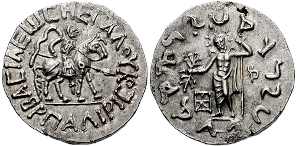 아흐마드 하산 다니와 는 파키스탄 칠라스와 훈자 신성암의 암각화를 근거로, 마우에스가 카라코람 산맥을 넘어 아폴로도투스 2세로부터 탁실라를 점령했다고 추정한다.[37]