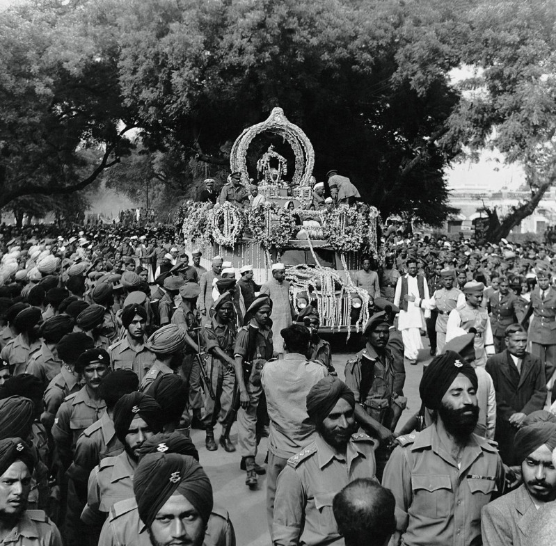 1948년 1월, 간디는 종교적 폭력을 막기 위해 단식 투쟁을 벌였다. 그러나 1월 30일, 힌두 민족주의자 나투람 고드세에게 암살당했다. 간디의 죽음은 인도 사회에 큰 충격을 주었고, 네루의 권력을 강화하는 계기가 되었다.
