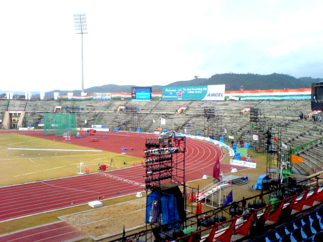 인디라 간디 육상 경기장은 2007년 제33회 인도 전국 경기대회를 위해 건설된 다목적 경기장이다. 인도 제4대 총리인 인디라 간디의 이름을 따서 명명되었으며, 2014년부터 노스이스트 유나이티드 FC의 홈구장으로 사용되었다. 인도 축구 국가대표팀 경기와 2017 FIFA U-17 월드컵 경기를 개최했으며, 2023년에는 보하그 비후를 기념하는 대규모 공연이 열려 세계 기록을 세우기도 했다.