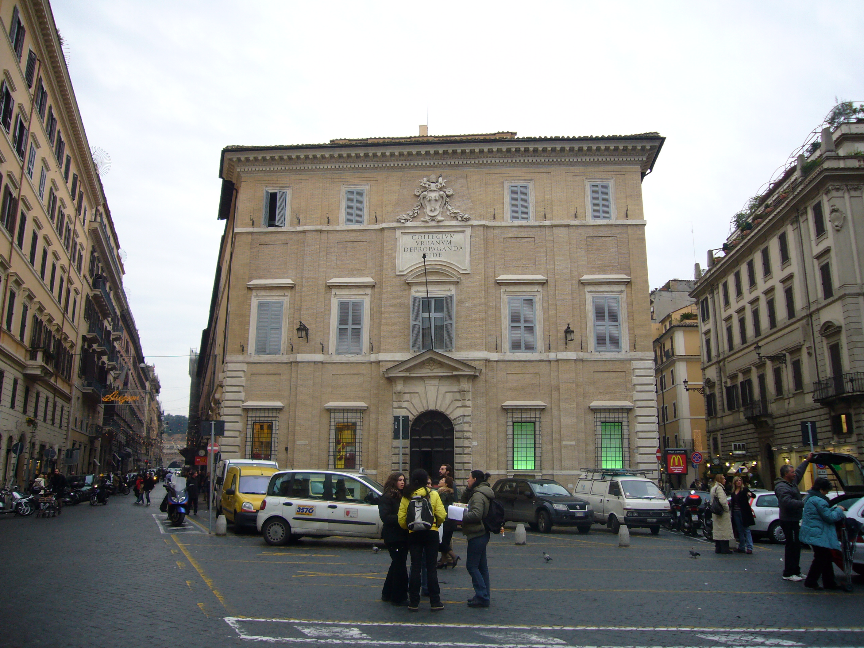 잔 로렌초 베르니니가 인류복음화성 청사 건물 공사를 시작하였으나, 1644년에 프란체스코 보로미니로 교체되었다. 건물과 건물 안 경당은 보로미니의 걸작 가운데 하나로 손꼽힌다.[13]