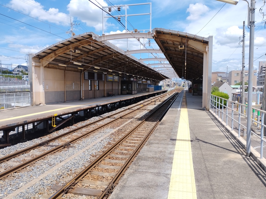 그 후, 1995년 (헤이세이 7년)에 주변의 택지 개발 진전에 따라 부활하여, 원래 위치에서 약 200m 사카에마치 쪽에 다시 개업했다. 메이테츠에서는 당역 개업 이래, 기존 노선에서는 10년간 역을 신설하지 않았다.[4] 역 재개업과 동시에 동쪽에 있던 건널목이 폐지되었다.