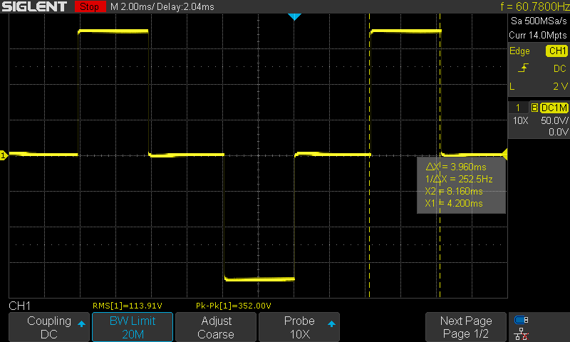 PWM 기법을 사용하여 주파수를 일정하게 유지하면서 on 시간과 off 시간의 비율을 조정하여 RMS 전압을 변경할 수 있다. 출력의 고조파 스펙트럼은 펄스의 폭과 변조 주파수에 따라 달라진다. 3레벨 파형의 최소 왜곡은 펄스가 파형의 130도에 걸쳐 확장될 때 달성되지만, 결과 전압은 여전히 약 30%의 THD를 가지며, 이는 계통 연계 전력원의 상업적 표준보다 높다.[7] 유도 전동기를 작동할 때 전압 고조파는 일반적으로 문제가 되지 않지만, 전류 파형의 고조파 왜곡은 추가적인 발열을 유발하고 맥동 토크를 생성할 수 있다.[8]