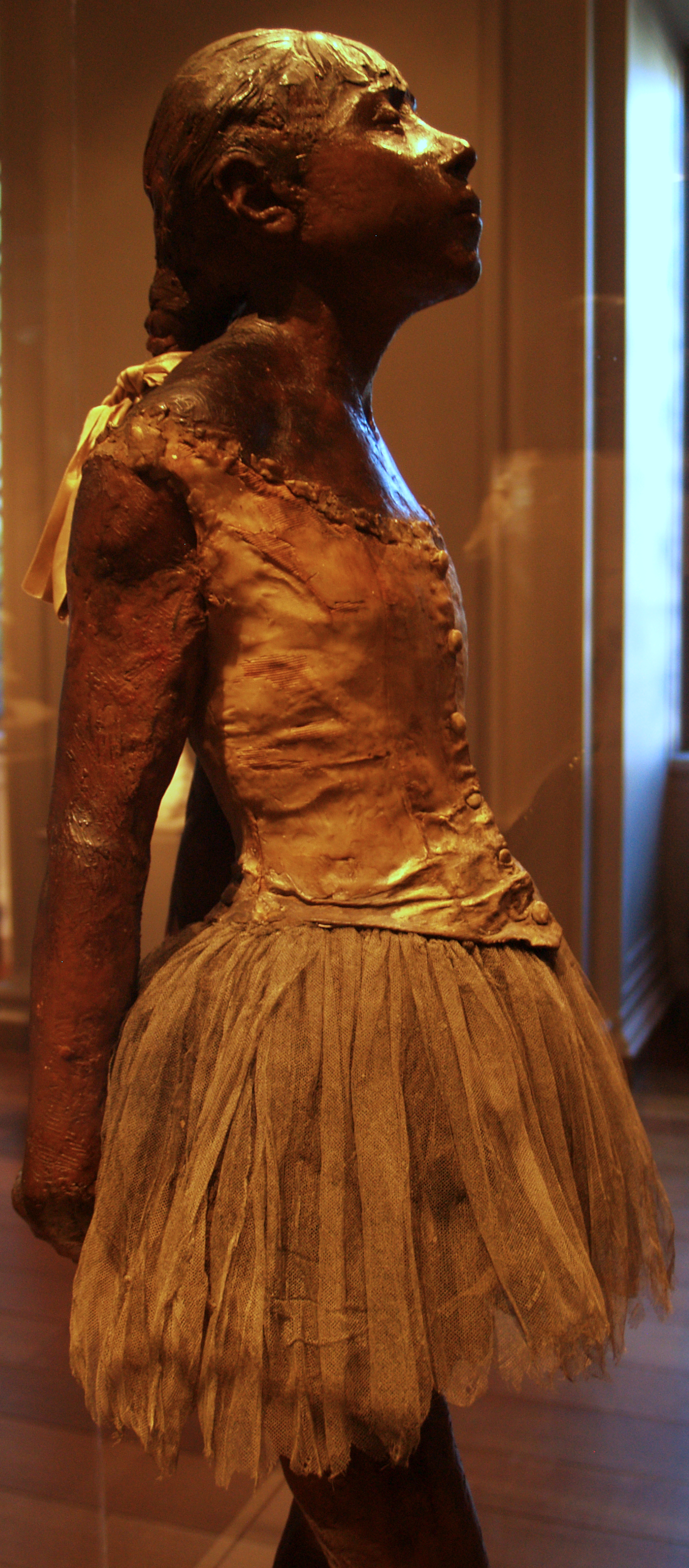 조각에서는 오귀스트 로댕이 대략적으로 모델링된 표면을 사용하여 일시적인 빛의 효과를 표현하는 방식으로 인상주의적인 경향을 보였다.[47] 에드가 드가는 생전에 주로 화가로 알려졌지만, 1880년대 후반 조각에 집중하기 시작했다. 그는 왁스를 사용하여 수정과 재시작이 용이한 모델링 과정을 탐구했으며, 생애 동안 150점에 달하는 조각 작품을 제작했다.[44]