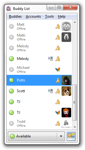 개인 메시지 | ICQ, AIM, Windows Live Messenger, 야후! 메신저, Skype, 구글 토크 |