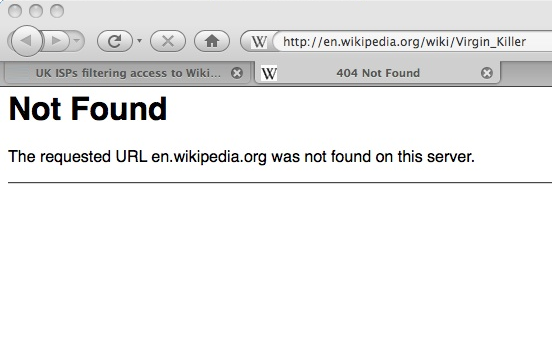 영국의 위키백과 사용자들은 《Virgin Killer》 기사 및 이미지에 접근할 수 없게 되었다.[17][2] 이는 인터넷 감시 재단(IWF)이 해당 콘텐츠를 블랙리스트에 추가했기 때문이다. IWF는 해당 이미지를 "성적 행위가 없는 관능적인 포즈"로 묘사하며, "18세 미만의 아동의 잠재적으로 불법적인 부적절한 이미지"로 판단했다.[17][18]