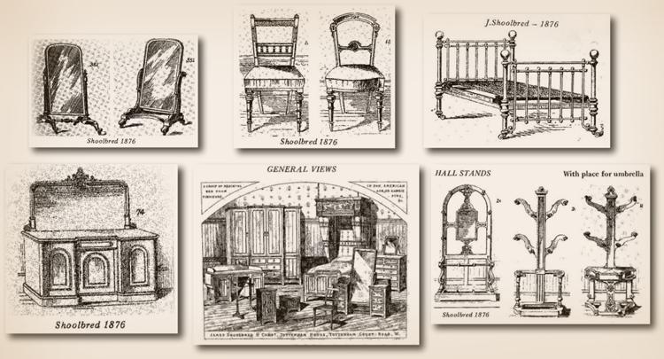 백화점의 수와 규모가 증가함에 따라 상점 내 소매 공간은 고객에게 예시를 보여주기 위해 다양한 스타일로 꾸며졌다. 특히 효과적인 광고 도구 중 하나는 대중이 볼 수 있도록 쇼룸에서 국내외 전시회에 모형 방을 설치하는 것이었다. 이 분야의 선구적인 업체 중 일부는 워링 앤 질로(Waring & Gillow), 제임스 슐브레드(James Shoolbred), 민턴(Mintons) 및 홀랜드 앤 선즈(Holland & Sons)였다. 이러한 전통적인 고품질 가구 제조업체들은 취향과 스타일 문제에 대해 확신이 없는 중산층 고객에게 조언자 역할을 하기 시작했으며, 영국 내 많은 중요 건물의 인테리어 디자인 및 가구 설계 계약을 체결하기 시작했다.[10]