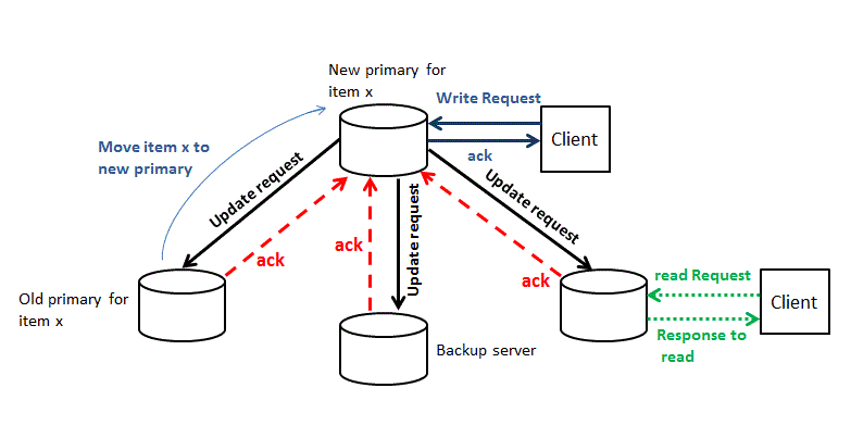 - 클라이언트 A가 노드 M에 행 X를 기록한다.