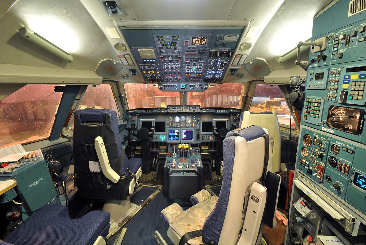 조종석에는 6개의 다기능 컬러 LCD 디스플레이, 관성 및 위성 항법 시스템, 항공 교통 충돌 방지 시스템(TCAS, 모드 "S" 포함) 등 최신 러시아 항공 전자 장비가 통합되어 있어 단 2명의 승무원으로 운용이 가능하다. 이 항공 전자 장비는 유럽과 북미 지역 국제 노선의 최신 요구 사항(RNP-1)을 충족하며, ICAO CAT III/A 조건에서의 항법 및 착륙이 가능하다.