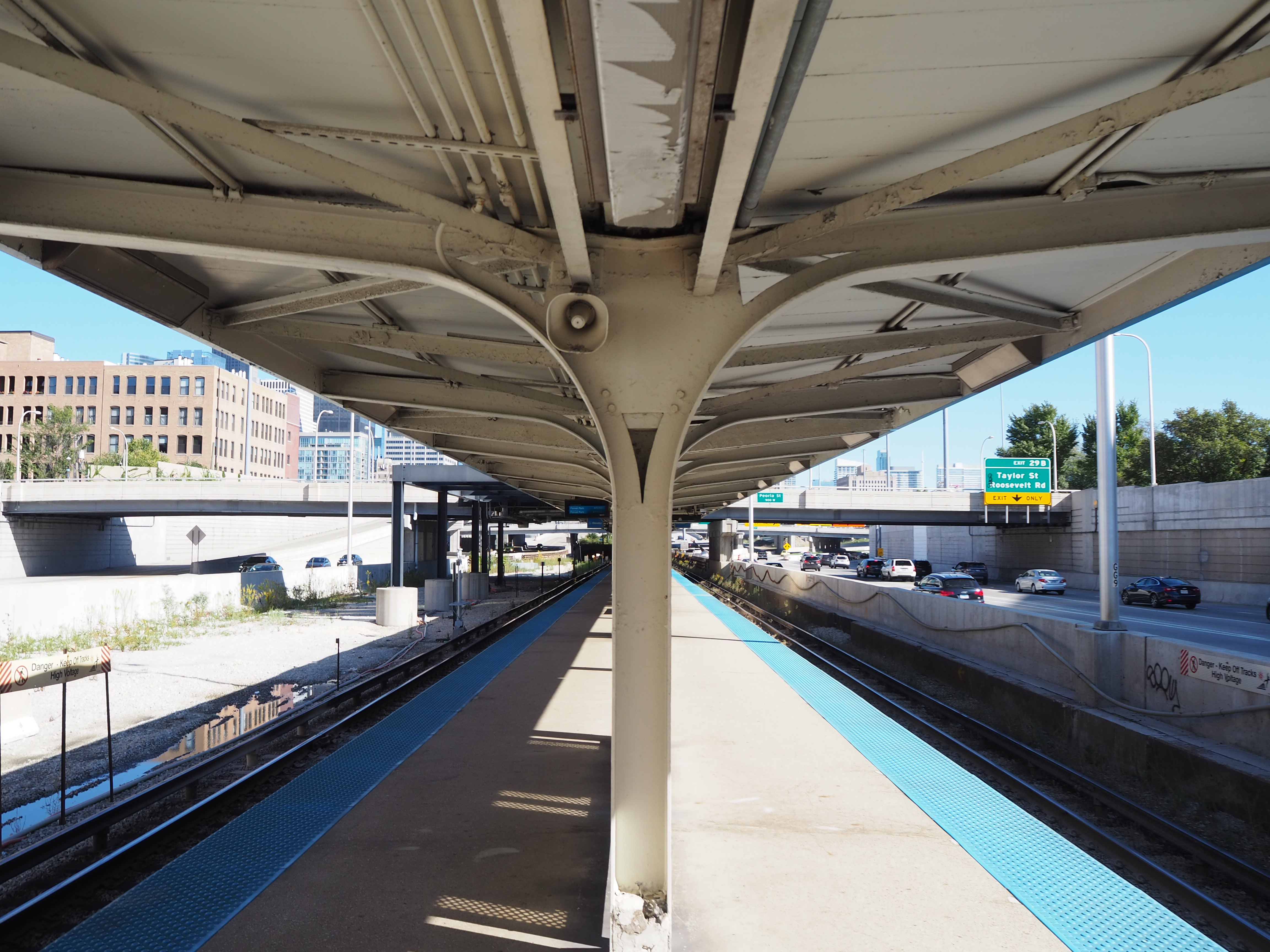 시카고 교통국(CTA)의 블루 라인은 시카고 'L'의 일부로, 캠퍼스 북쪽을 따라 아이젠하워 고속도로 중앙을 통과한다. UIC-할스테드, 라신 두 역이 동부 캠퍼스와 인접해 있다.