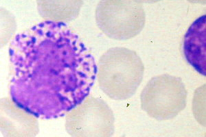 자동화된 결과는 10~25%의 경우 수동 혈액 도말 검토를 위해 플래그가 지정되는데,[72] 이는 분석기가 제대로 계산할 수 없는 비정상적인 세포 집단,[72] 정확하지 않을 수 있다는 분석기에서 생성된 내부 플래그,[77] 또는 설정된 임계값을 벗어나는 수치 결과 때문일 수 있다.[73] 이러한 문제를 조사하기 위해 혈액을 현미경 슬라이드에 펴서 로마노프스키 염색으로 염색하고 현미경으로 검사한다.[78] 적혈구, 백혈구, 혈소판의 외관을 평가하고, 이상이 있는 경우 질적 이상을 보고한다.[79]