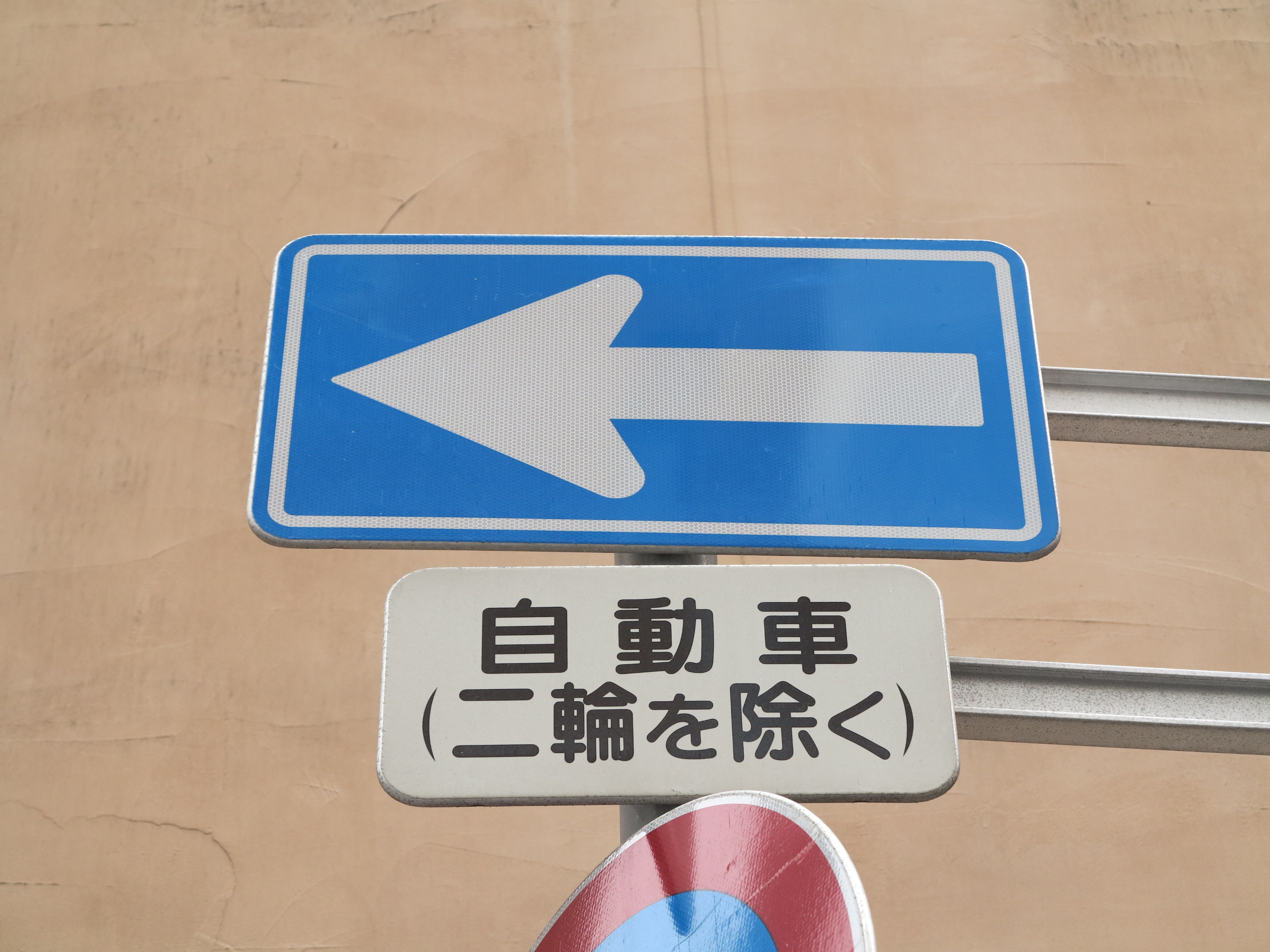 - 일반적인 표지판: "일방통행" 표지판은 차량이 진행해야 하는 방향을 나타내며, "진입 금지" 표지판은 반대 방향으로의 진입을 금지한다. 대한민국에서는 파란색 바탕에 흰색 화살표로 된 "일방통행" 표지판과 빨간색 원 안에 흰색 가로 막대가 있는 "진입 금지" 표지판이 사용된다.[5]
