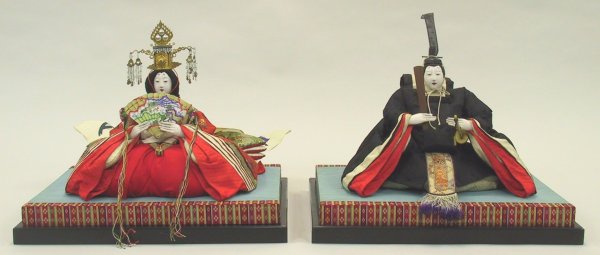 • 히나일본어 인형은 3월 3일 인형 축제인 히나마츠리일본어를 위한 인형이다. 다양한 재료로 만들 수 있지만, 전통적인 히나일본어 인형은 정교하고 여러 겹의 직물로 만든 피라미드형 몸체에 짚이나 나무 조각을 채우고, 고훈일본어을 덮은 조각된 나무 손(경우에 따라 발도)과 고훈일본어을 덮고 유리 눈을 끼운 조각된 나무 또는 복합 성형 목재 머리를 가진다(1850년경까지는 눈이 고훈일본어에 조각되어 칠해졌다). 머리카락은 사람이나 실크로 만든다. 전체 세트는 특정 캐릭터를 나타내는 최소 15개의 인형과 많은 부속품(도구일본어)으로 구성되지만, 기본 세트는 남녀 한 쌍이며, 종종 황제와 황후라고 불린다.[4]