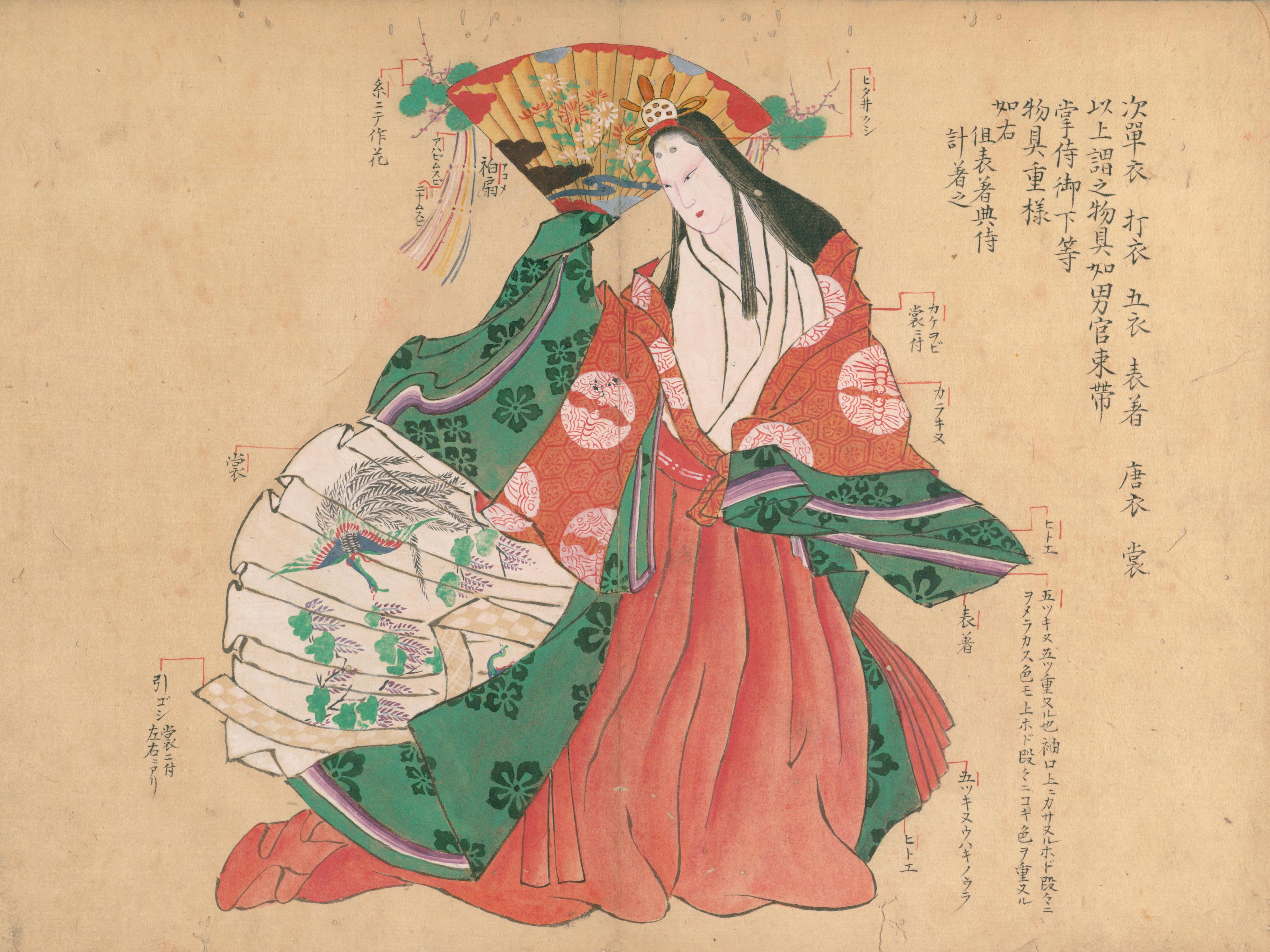 동시에 일본은 외래 문화를 소화하면서 "국풍 문화" 시대를 맞이하였다. 귀족 여성들 사이에서는 가나 문자를 만들어 와카와 이야기, 일기 등의 문학이 번성하여 『겐지 이야기』와 『마쿠라노소시』가 대표적인 예이다. 한편, 당시 일본인들은 대륙 문화를 완전히 배척하지 않았고, 상류 귀족 사이에서는 중국에서 온 공예품, 미술품인 "당물[127][128][129]"을 소중히 여겼다.
