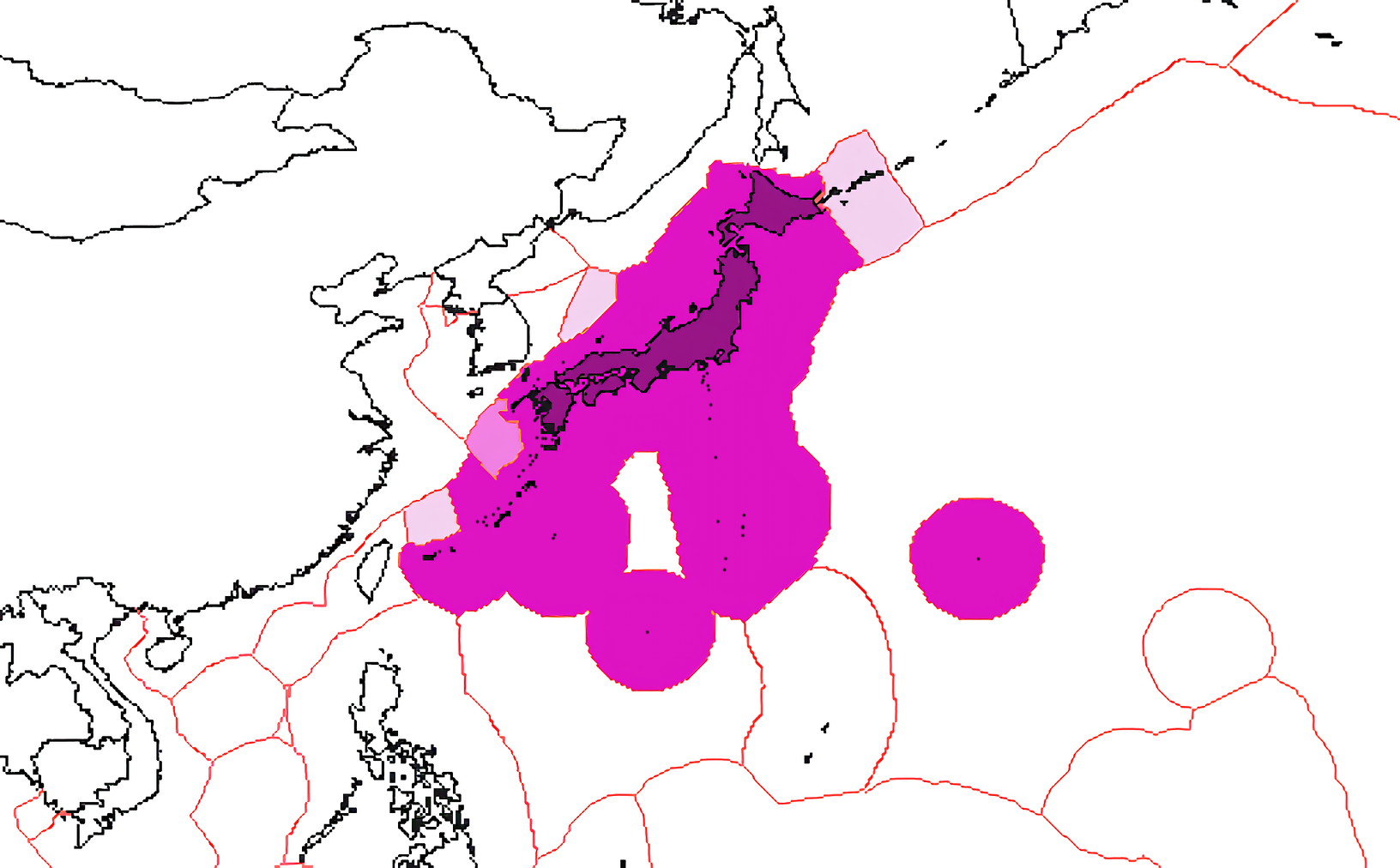 • 도호쿠 지방(혼슈 상반부), 홋카이도, 쿠릴 열도, 사할린은 오호츠크 판에 위치한다.[39][40]