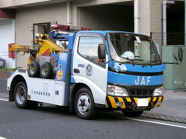 JAF의 주요 사업은 사고나 고장으로 자력 주행이 불가능해진 자동차(주로 자가용 자동차가 대상이며, 차량 중량 3000kg 이하, 최대 적재량 2000kg 이하이다.)의 견인, 키 잠김, 배터리 방전, 바퀴 빠짐, 빠짐, 미끄러짐, 펑크, 연료 부족 등이다. 연간 약 300만 건의 출동 실적이 있다. 2005년 4월부터 오토바이 로드 서비스를 시작했다[9]。 또한, 제휴하고 있는 보험 회사의[10] 임의 보험 가입자는 임의 보험의 로드 서비스 업체를 통해 JAF를 호출할 수 있으며, 부품 대금의 일부를 보험 회사가 부담하거나 무료 견인 거리를 연장받을 수 있다.무료 견인 거리는 2008년 12월 이전에는 5km였지만 이후 15km로 변경되었다. 서비스 의뢰 횟수에 제한은 없으며, 1주일 후까지 로드 서비스의 일시 예약도 가능하다.