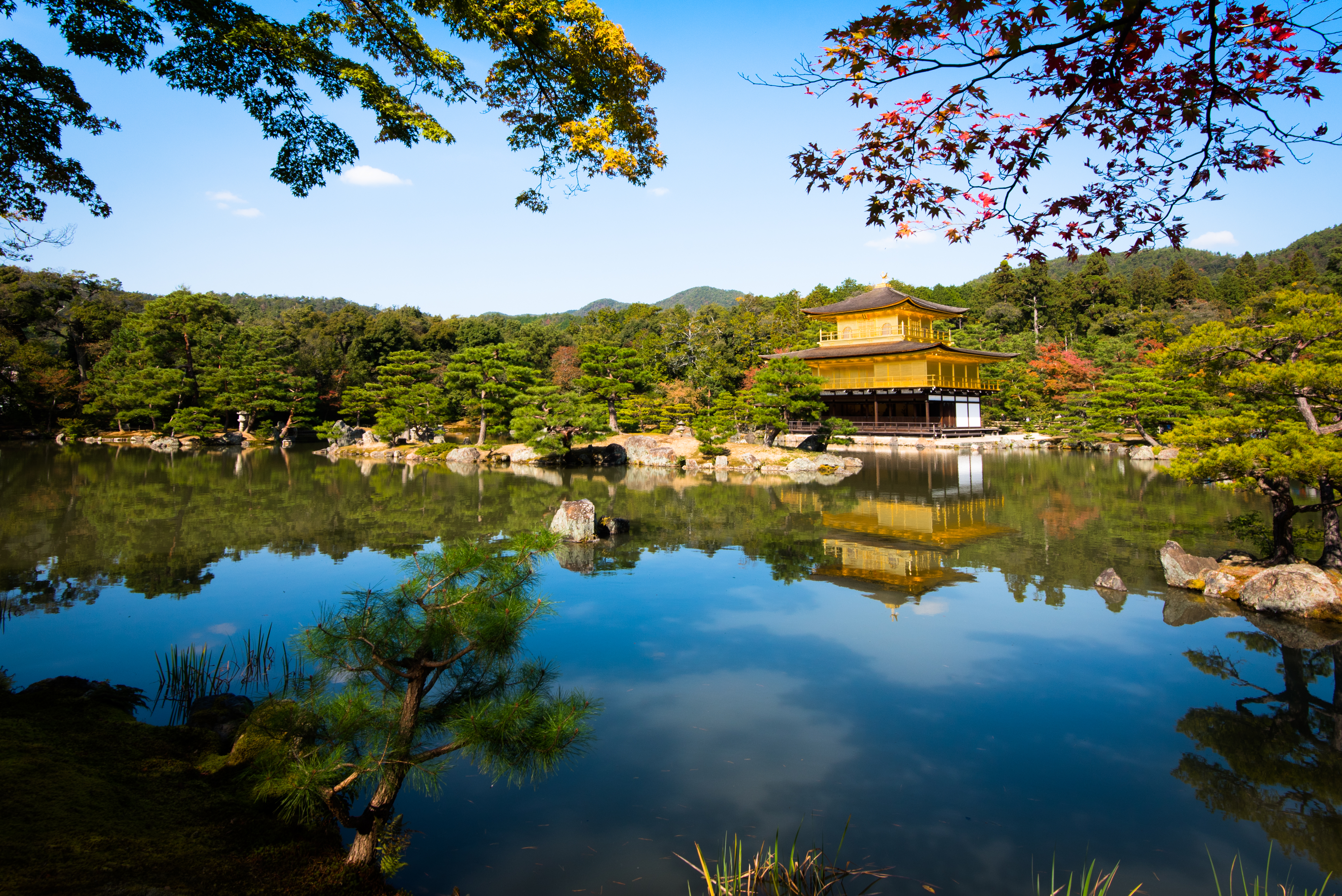 금각사(Kinkaku-ji) | 교토 | 금박으로 덮인 누각과 전통적인 수경 정원 |