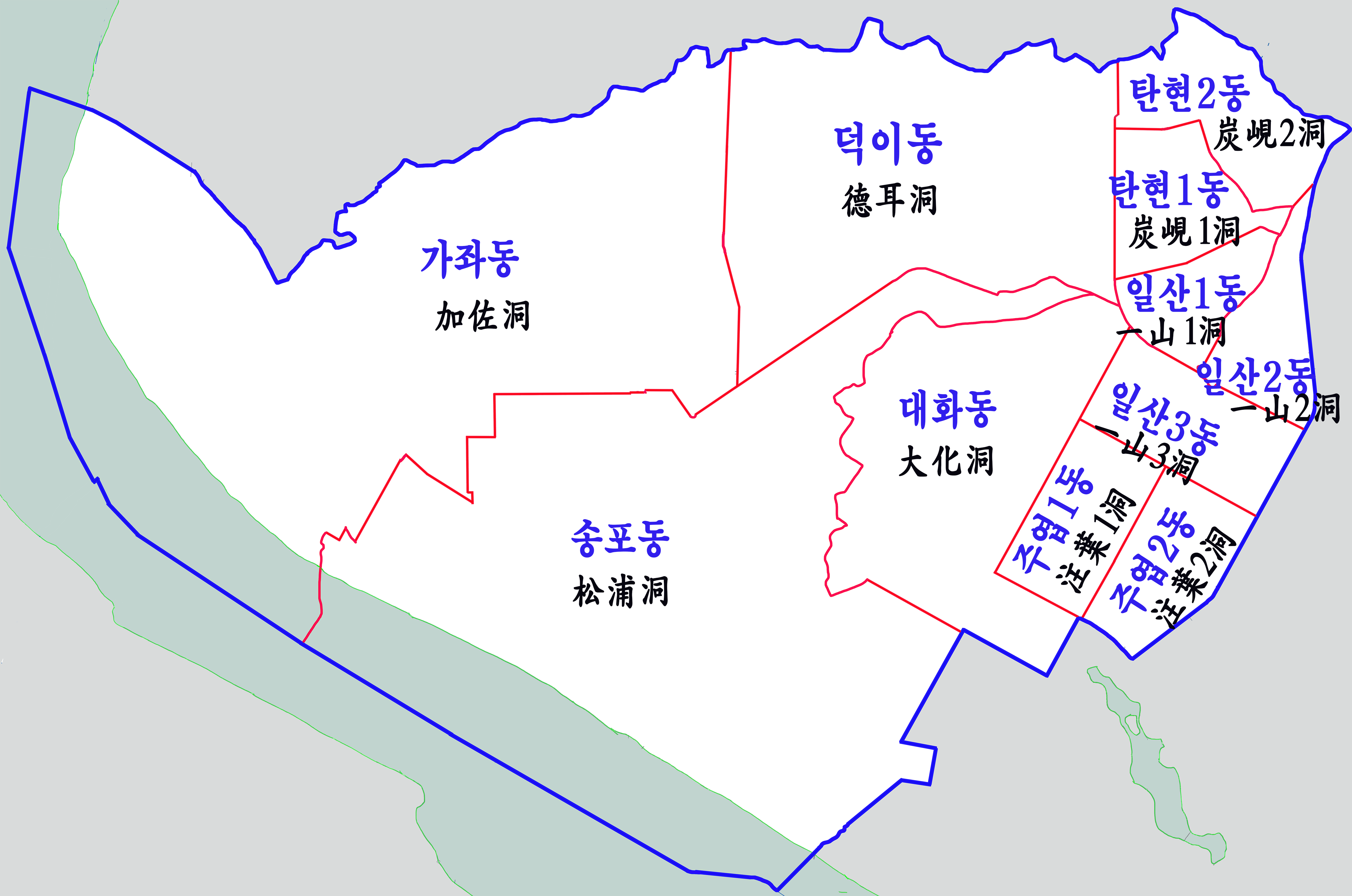 일산2동 | 一山2洞 | 0.82km2 | 21,036 | 8,319 |