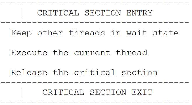임계 구역은 프로그램에서 동시에 여러 스레드가 접근했을 때 문제가 발생할 수 있는 영역이다. 이러한 문제를 해결하기 위해 동기화 메커니즘이 사용된다.임계 구역의 독점적인 사용을 보장하기 위해 프로그램 진입점과 종료 시점에 동기화 메커니즘이 필요하다.[2]