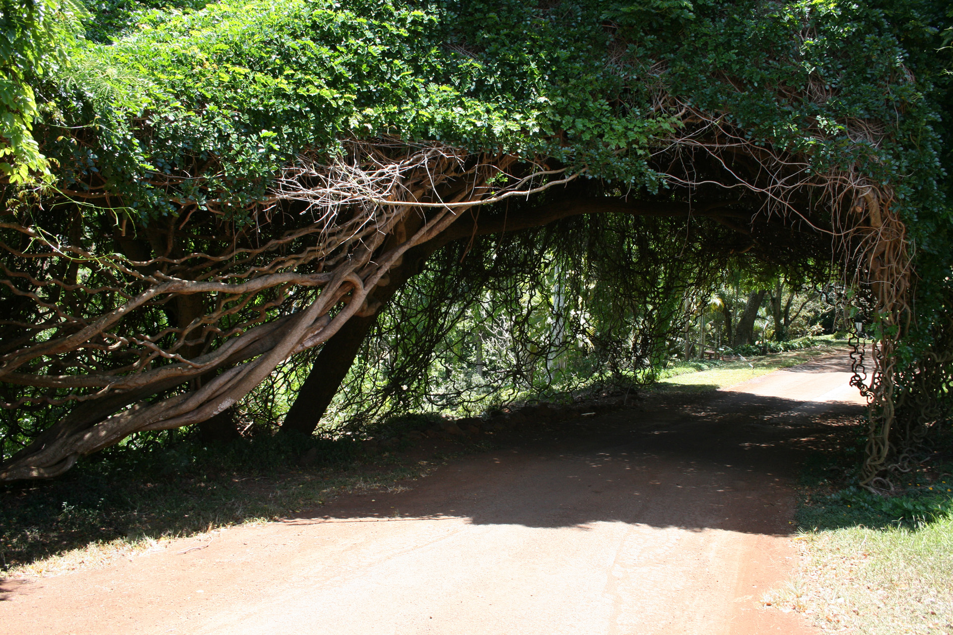 도로 위를 덮은 몽키래더 덩굴 캐노피