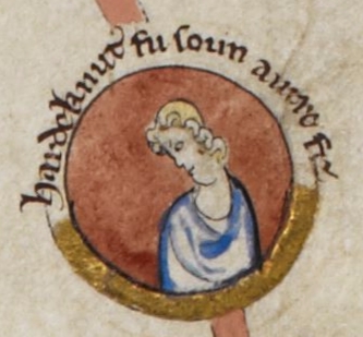 하르데크누트 (Hardeknudda) 1040년 6월 18일–1042년[128] | ![]() | 1018년 크누트 대왕과 노르망디의 에마의 아들[127] | 불명 | 1042년 6월 8일 램베스 약 24세[127] |