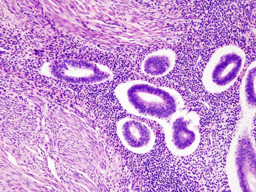 - 고에코 섬 - 일반적으로 근층 내의 흰색 자궁내막 섬