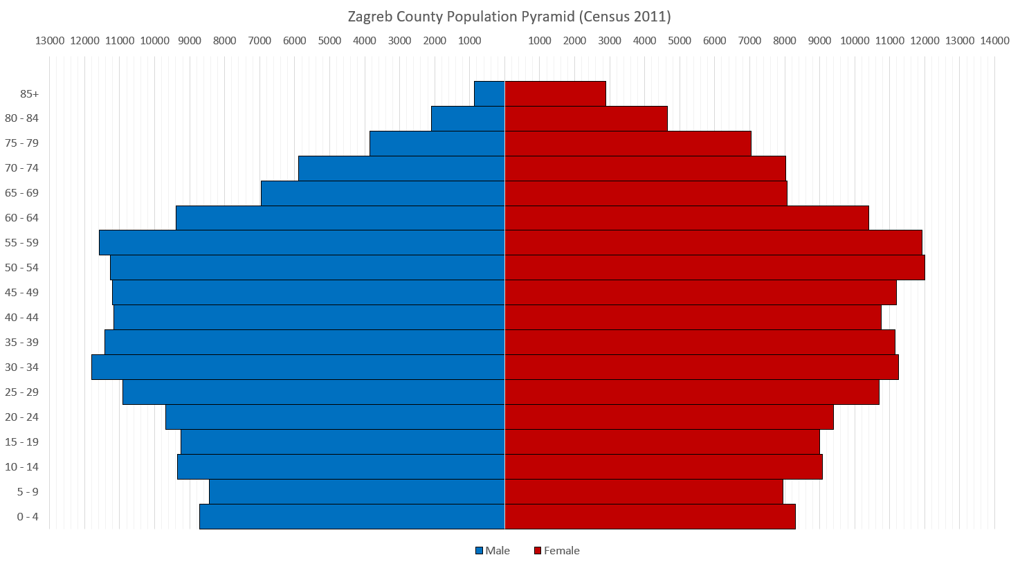 2011년 인구 조사 기준 자그레브주 인구 피라미드.