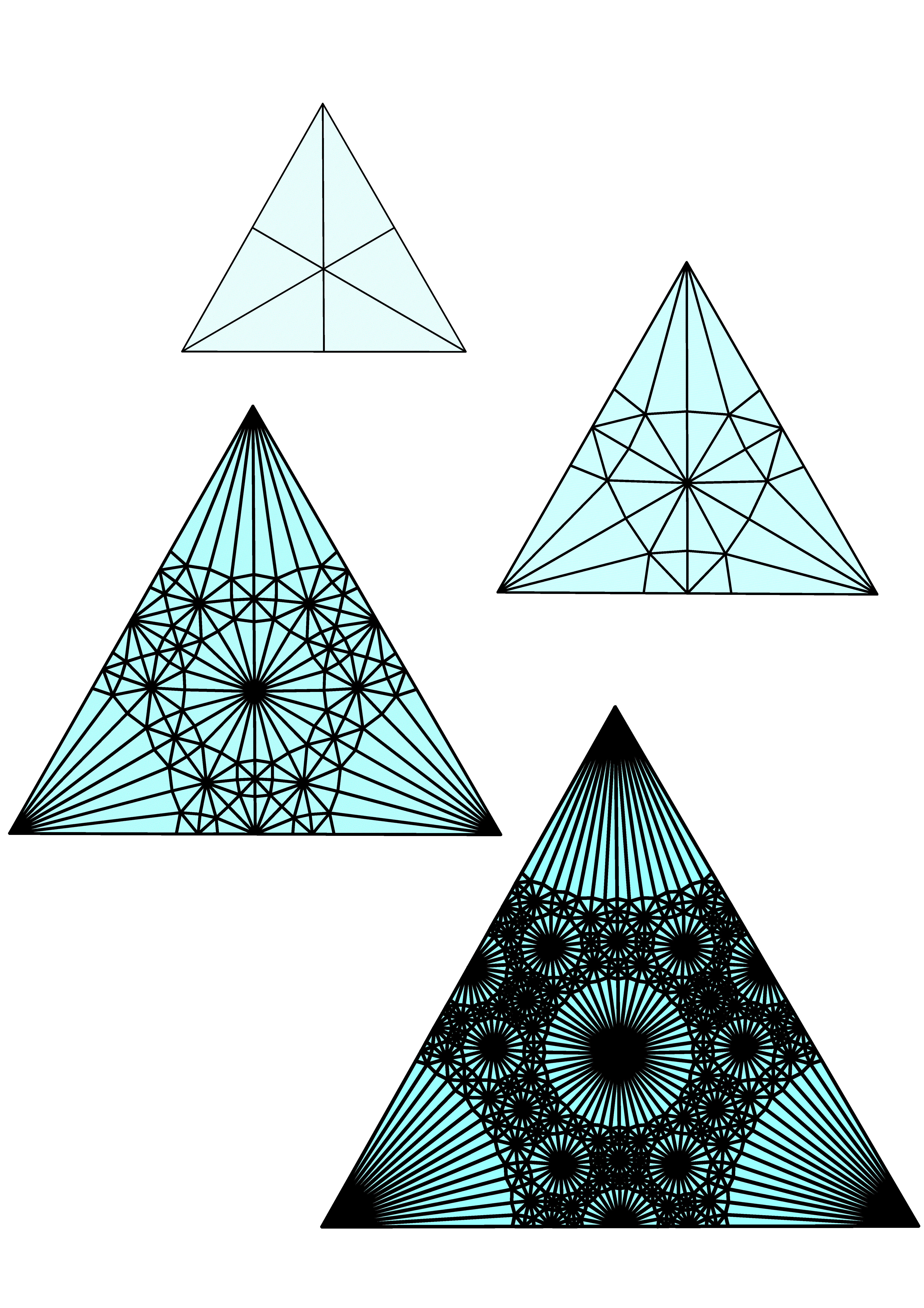 |섬네일|바리 중심 분할을 사용하여 반복적으로 분할된 삼각형. 큰 원의 여집합은 시에르핀스키 카펫이 된다.