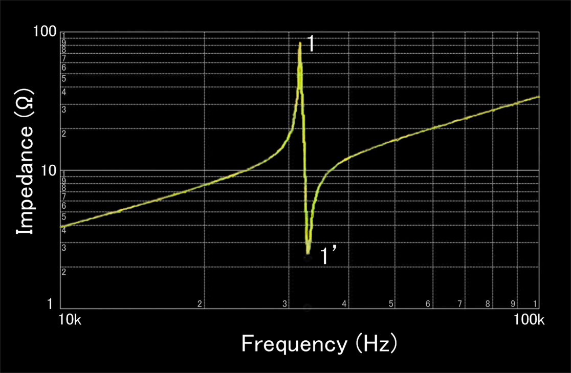 가장 기본적인 공진 유도 결합은 1차 측에 하나의 구동 코일과 2차 측에 하나의 공진 회로로 구성된다.[34][5][2] 2차 측의 공진 상태가 1차 측에서 관찰될 때, 한 쌍의 두 공진, 즉 반공진 주파수(병렬 공진 주파수 1)와 공진 주파수(직렬 공진 주파수 1')가 관찰된다.[35][5] 2차 코일의 단락 인덕턴스와 공진 캐패시터는 공진 회로로 결합된다.[36][5] 1차 코일이 2차 측의 공진 주파수(직렬 공진 주파수)로 구동되면, 1차 코일과 2차 코일의 자기장의 위상이 동기화된다.[5] 결과적으로 상호 플럭스의 증가로 인해 2차 코일에 최대 전압이 생성되고, 1차 코일의 구리 손실이 감소하며, 발열이 감소하고, 효율이 상대적으로 향상된다.[2]