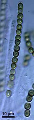 기저생장형 (basauxic) | 모세포에서 발달 단계가 점점 어린 포자 사슬이 방출됨. | |