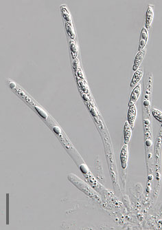 환문형 (annellidic) | 각 포자가 분리될 때마다 이전 포자의 흔적 안쪽에 고리 모양의 흔적(annellation)을 남김. | |