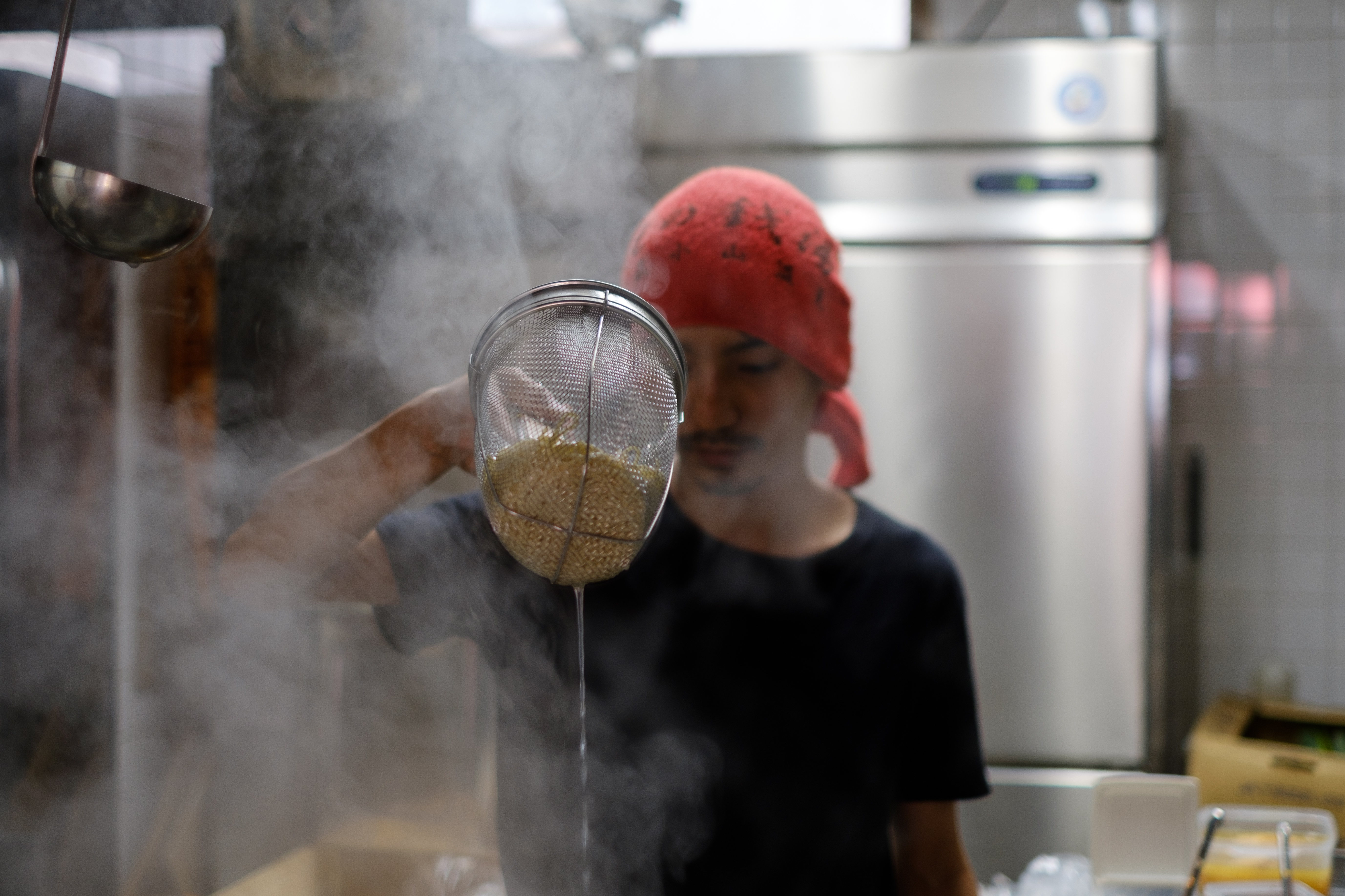우동이나 소바를 삶은 후 면 표면의 물기를 뺄 때 자루를 사용한다. 면을 자루에 넣은 채로 물에 넣어 조리하고, 자루째 물기를 빼기도 한다. 우동이나 소바 조리에 사용되는 물 끓이기 전용 손잡이 달린 자루는 '''수낭'''이라고 하며, '''후리자루''' 또는 '''아게자루'''라고도 부른다.[2] 사누키 우동을 다시 데우거나 물을 뺄 때는 직경이 작고 깊은 바닥의 특수한 자루를 사용하는데, 이를 '''뎃포자루'''(줄여서 '''테보''', '''테보자루'''라고도 한다)라고 부른다.[2] 뎃포자루라는 이름은 "(우동) 덩어리"를 넣어 (재가열을 위해) 삶아 올리는 모습이 뎃포의 탄알과 비슷하다는 말장난에서 유래했다는 설이 있다.[2]